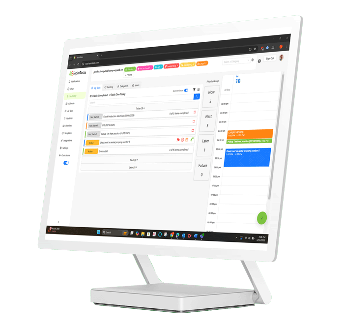 Say hello to organization with TepinTasks. Our “My Today” page is crafted to help you efficiently manage your tasks, scheduled events, deadlines, and daily activities while ensuring you stay focused on your most important goals.
